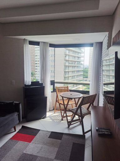 Apartamento de 44m² e totalmente mobiliado com 1 dormitório, banheiro, cozinha integrada com a sacada fechada e 1 vaga de garagem. Possui marcenaria completa nova, ar condicionados novos e já instalados, eletrodomésticos, geladeira, cooktop, sofá, cama, tapete, utensílios e muito mais. Empreendimento novo e completo, localizado em frente ao Parque do Ibirapuera e com área de lazer completa: academia, piscina adulto e infantil, sauna, bicicletário, espaço coworking, salão de festas, garagem com vagas para carro elétrico, segurança 24 horas, etc.