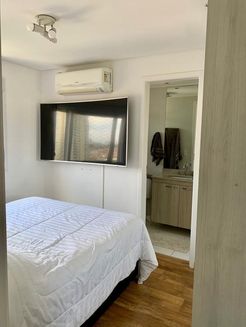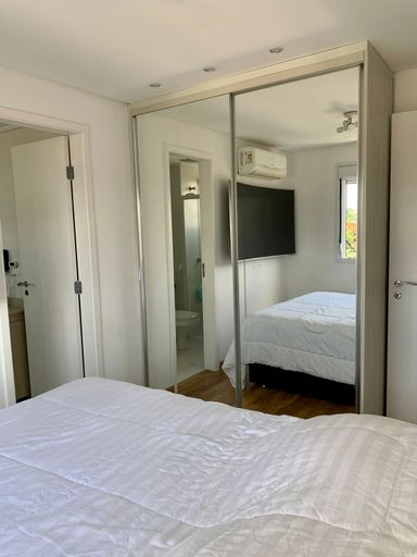 Este excelente apartamento de 57m², localizado no oitavo andar, oferece uma experiência de morar com modernidade e bom gosto. O imóvel conta com dois dormitórios, sendo uma suíte equipada com ar-condicionado, além de armários planejados em todos os ambientes e acabamento em piso laminado. A decoração é valorizada por ser rica em espelhos e contar com um sistema de iluminação planejado, que destaca a amplitude dos espaços.