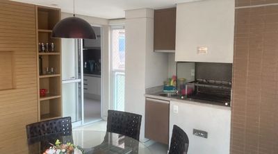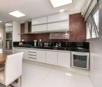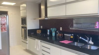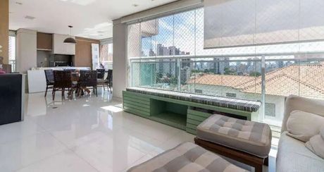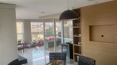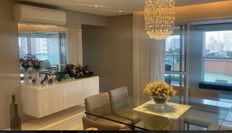 O imóvel possui 213m², com 3 suítes, lavabo, e uma sala ampla para três ambientes, que se integra a uma varanda gourmet. Os acabamentos são de alto padrão, com marcenaria planejada e ar-condicionado em todos os cômodos. A área de serviço é completa, incluindo copa e dependência de empregados (dormitório e banheiro). O apartamento conta ainda com 3 vagas de garagem.
