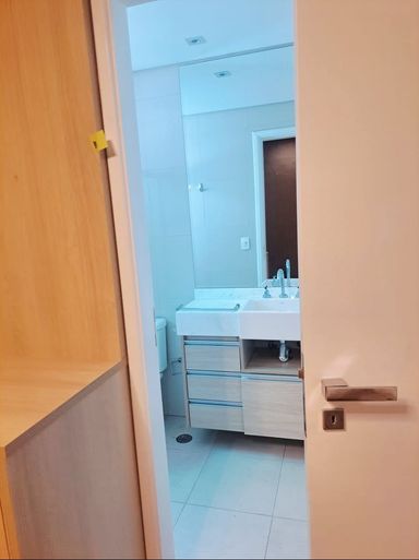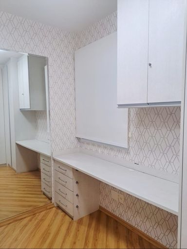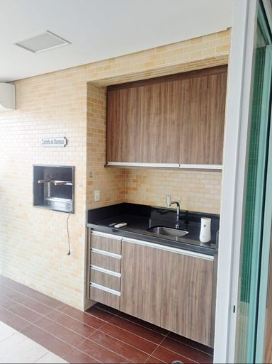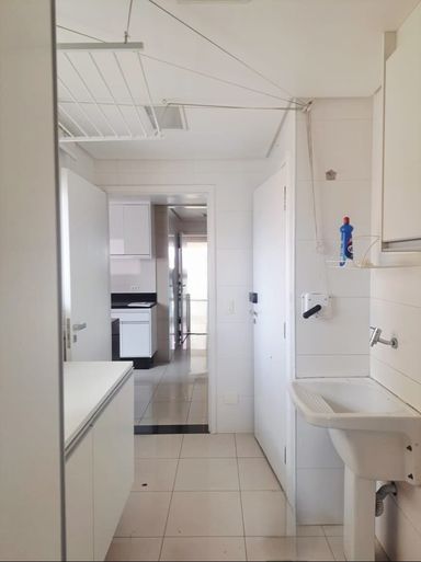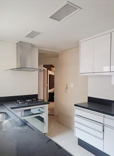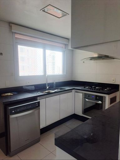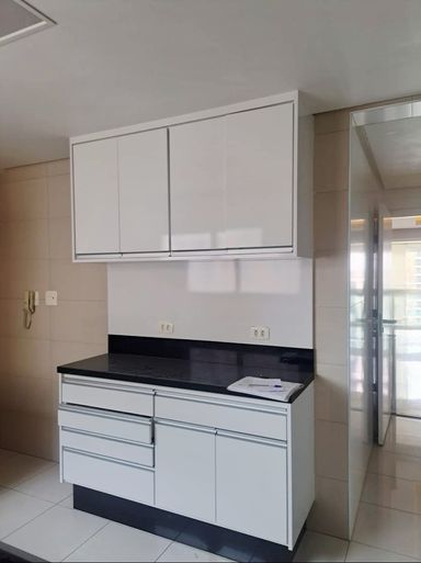 A funcionalidade é um pilar central desta residência. A cozinha é um convite à gastronomia, equipada com móveis planejados de alto padrão e eletrodomésticos de primeira linha, como coifa, cooktop, forno elétrico e lava-louças. A área de serviço é igualmente bem resolvida com armários sob medida e conta com uma dependência completa para funcionários. Para completar a conveniência, o apartamento oferece um depósito privativo e o diferencial raríssimo de quatro vagas de garagem, garantindo total tranquilidade para moradores e visitantes.
