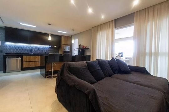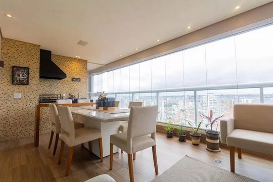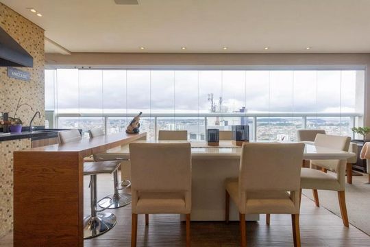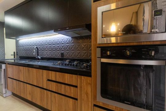 A sala espaçosa e integrada é banhada por luz natural, criando um ambiente acolhedor e ideal para o convívio. O apartamento conta com duas sacadas: uma ampla para lazer, perfeita para receber amigos, e outra exclusiva na suíte master, proporcionando um refúgio privativo. A cozinha é totalmente planejada e equipada com cooktop, forno e micro-ondas embutidos, e a área de serviço é arejada e funcional.