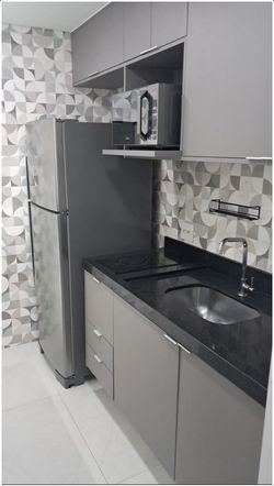 A cozinha é planejada e totalmente equipada, com marcenaria personalizada, geladeira em inox, cooktop e utensílios, oferecendo praticidade no dia a dia. O imóvel conta ainda com área de serviço e uma vaga de garagem determinada no segundo subsolo. Entre os diferenciais, destacam-se a pintura nova, iluminação moderna, ar-condicionado nos dormitórios e no living, cortinas rolo em todos os ambientes, marcenaria sob medida, novo padrão elétrico e persianas no living.