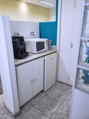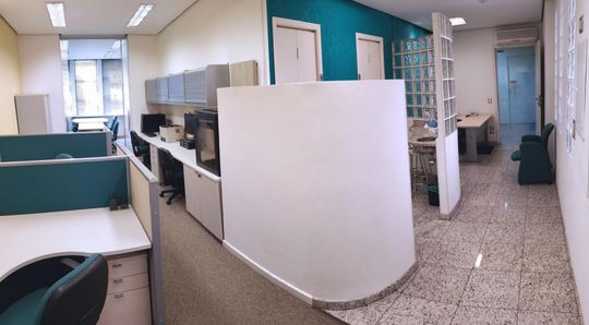 O imóvel conta com um layout inteligente, dividido em três ambientes: uma recepção, uma sala de reuniões e uma sala de trabalho com cinco estações. A copa é completa com frigobar, cafeteira e micro-ondas, e há dois banheiros para maior comodidade.