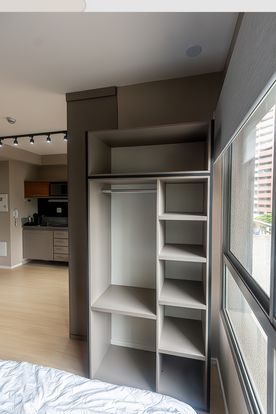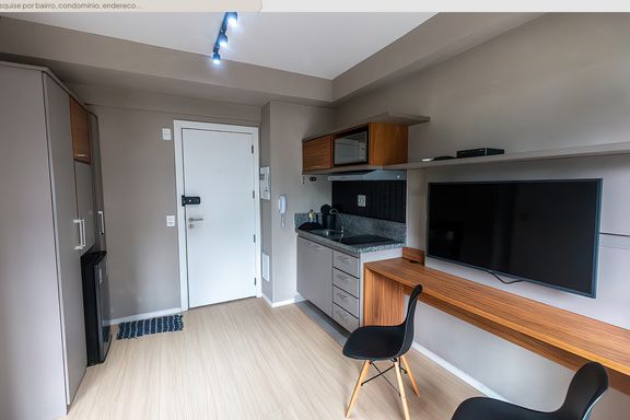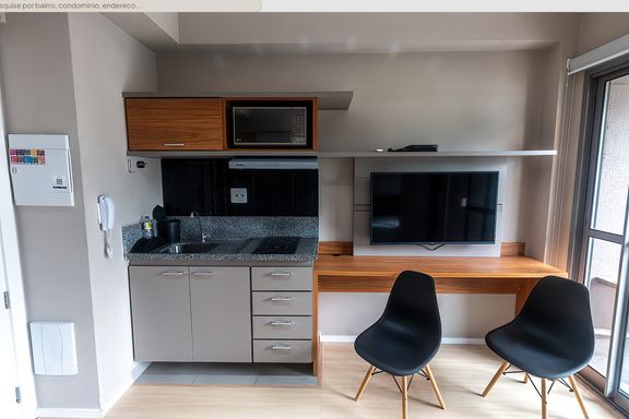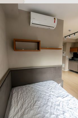 O imóvel conta com marcenaria planejada de excelente qualidade, cama confortável, espaço funcional para trabalho ou refeições e eletrodomésticos modernos que garantem praticidade no dia a dia. A decoração contemporânea, aliada a um projeto de iluminação bem pensado, valoriza a amplitude do ambiente e cria uma atmosfera aconchegante. Para maior conforto, o studio já dispõe de ar-condicionado instalado.